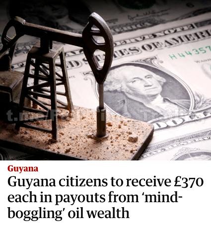 Правительство Гайаны приняло решение выплатить каждому жителю страны, достигшему 18-летнего возраста, 100 000 гайанских долларов, что эквивалентно примерно 50 000 российских рублей. Это стало возможным благодаря значительному росту экономики, вызванному увеличением добычи нефти. Выплаты предлагается проводить регулярно, так как экономика Гайаны продолжает развиваться. В течение многих лет ВВП страны был одним из самых низких в регионе, однако после обнаружения в 2015 году огромных запасов нефти у побережья Атлантического океана она стала одной из самых быстрорастущих экономик в мире.