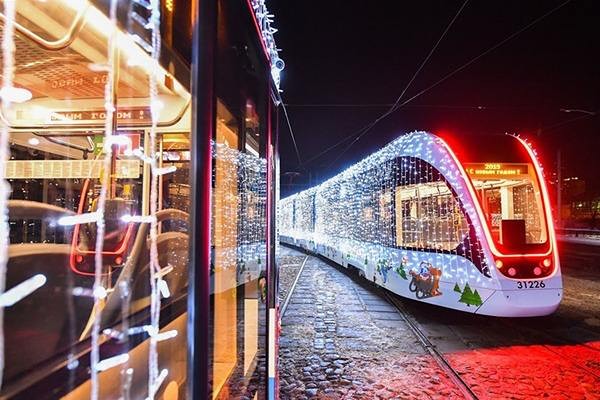 К Новому году городской транспорт Москвы был празднично украшен. Как рассказал заместитель мэра Максим Ликсутов, праздничными атрибутами были оформлены трамваи, электробусы и поезда метро.