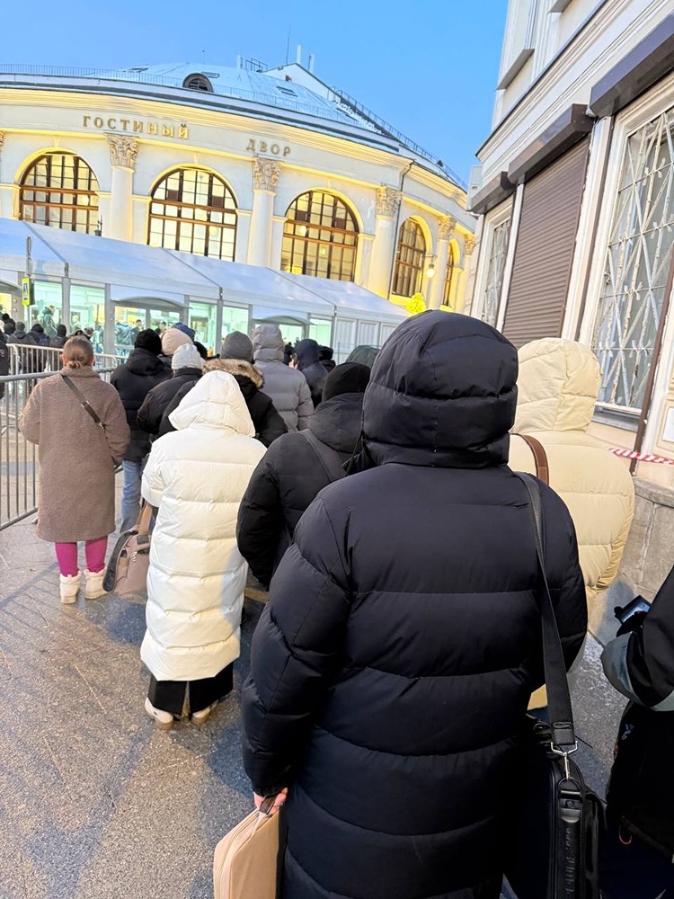 Журналисты выстроились в очередь у Гостиного Двора. Сегодня именно там в 12:00 начнётся ежегодная программа «Итоги года с Владимиром Путиным».