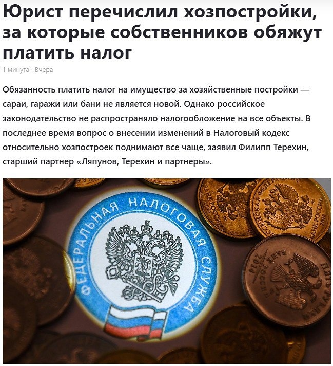 В России вводится новый налог на бани, сараи и другие хозяйственные постройки на дачных участках. Чтобы избежать проблем с наследованием, страхованием и компенсацией в случае чрезвычайных ситуаций, все эти объекты должны быть зарегистрированы в Росреестре. После регистрации владельцы будут обязаны платить налог в размере от 0,1% до 0,3% от стоимости постройки. Однако есть исключение: одна хозпостройка на участке, площадь которой не превышает 50 квадратных метров, освобождается от уплаты налога.