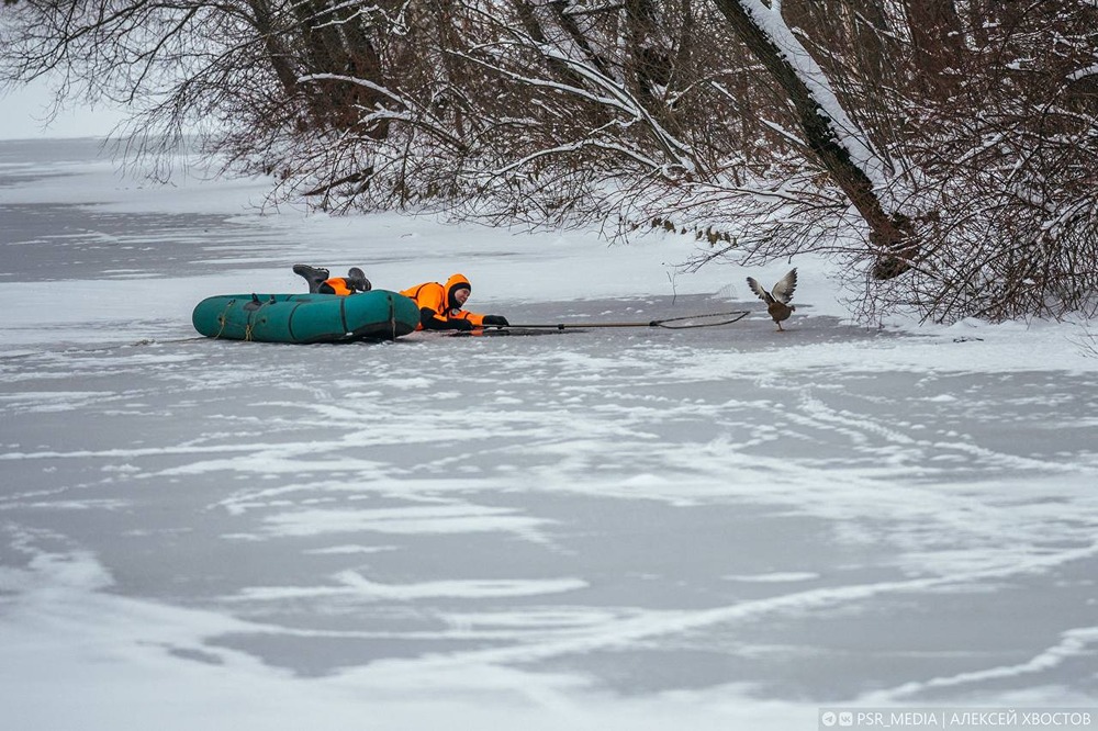 Утка провела несколько дней на тонком льду и отчаянно звала на помощь