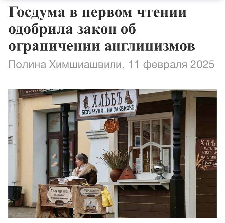 Госдума запретила использовать иностранные слова в рекламе, названиях и на вывесках. Депутаты одобрили в первом чтении законопроект, который полностью запрещает использование вывесок на иностранных языках. Все вывески должны быть переведены на русский язык.