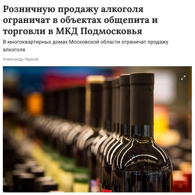 В Московской области будет запрещена продажа алкоголя в алкомаркетах, расположенных во дворах жилых домов. Такое решение было принято областной думой после многочисленных жалоб жителей. Закон вступит в силу с 1 сентября. Кроме того, ограничения коснутся и заведений общественного питания, расположенных в жилых многоэтажках. С 23:00 до 8:00 там будет запрещено продавать алкоголь.